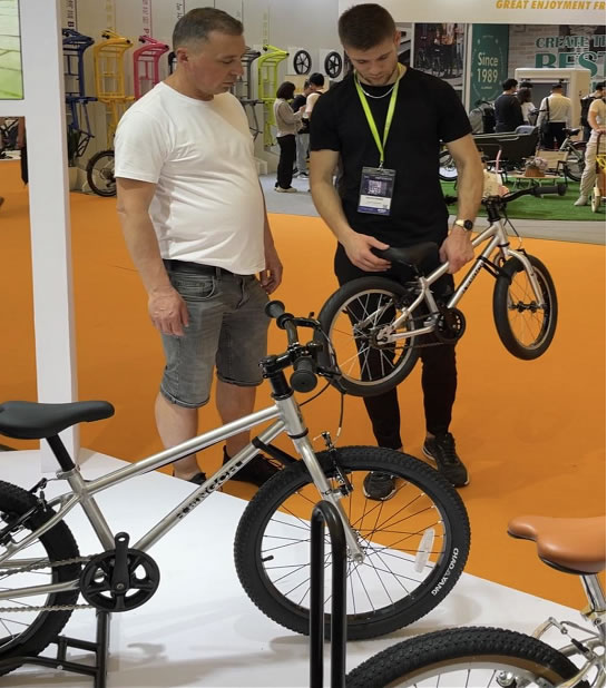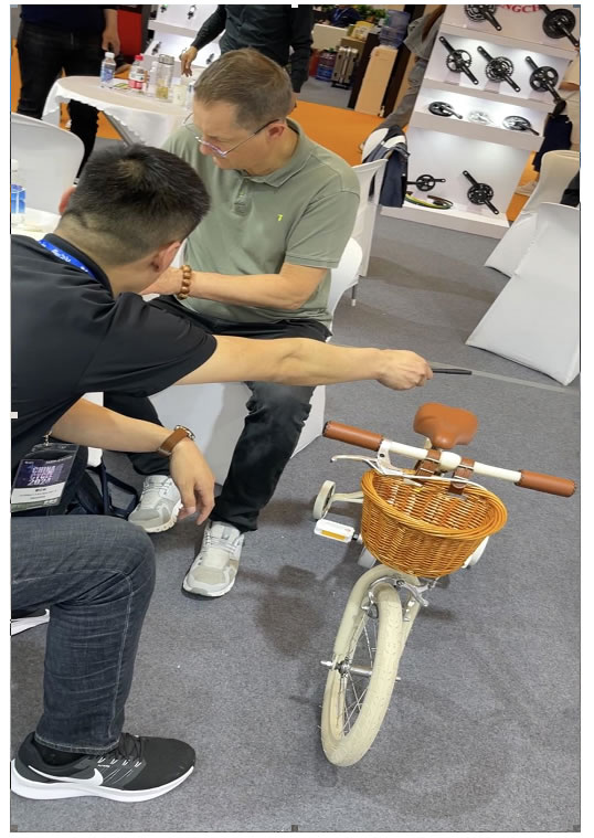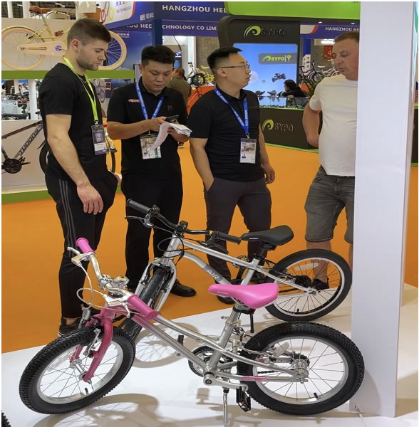 展會上我司共展出鞍座、曲柄、腳蹬、車軸、兒童自行車、兒童山地車、電動玩具等七種自主品牌產品,受到國內外客戶的喜愛和好評,尤其本公司的“阿捷利特”品牌的兒童自行車大受歡迎,該品牌曾獲2023年度新銳品牌的稱號,工業設計,產品質量更是達到行業領先水平。