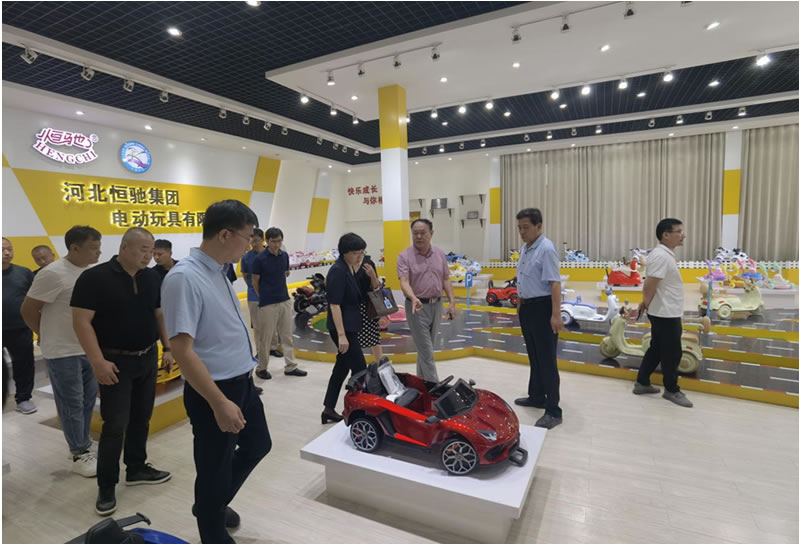 2023年8月31日中國玩具和嬰童用品協會梁梅會長帶領“中國童車之都”評審專家組,在平鄉縣副縣長董輝、恒馳集團總經理董榮起陪同下到恒馳集團電動玩具公司參觀、調研。集團作為河北省產業集群龍頭企業,是平鄉縣具有代表性的童車、玩具生產企業。無論是在設計研發、產品質量、還是在生產工藝上都是玩具行業領跑者。總經理董榮起向梁梅會長就恒馳集團未來發展規劃和玩具行業發展前景進行座談、匯報。
